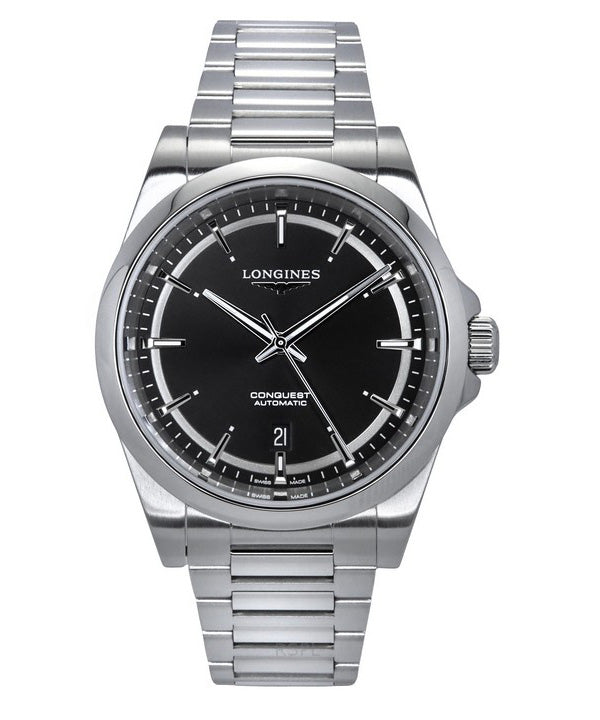 Montre Homme Longines Conquest Acier Inoxydable Sunray Cadran Noir Automatique L3.830.4.52.6 100M