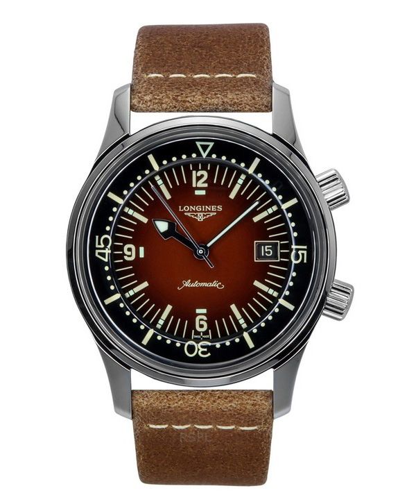 Montre Homme Longines Legend Diver Bracelet Cuir Cadran Marron Automatique L3.774.4.60.2 300M