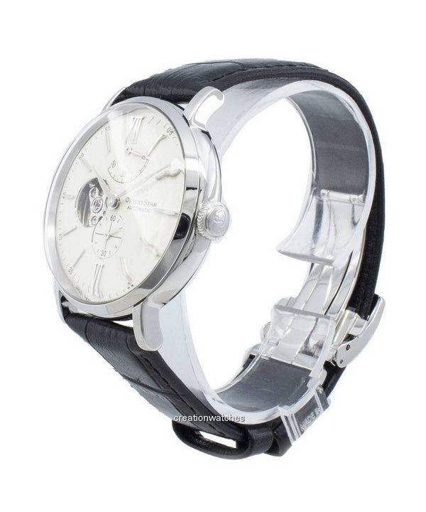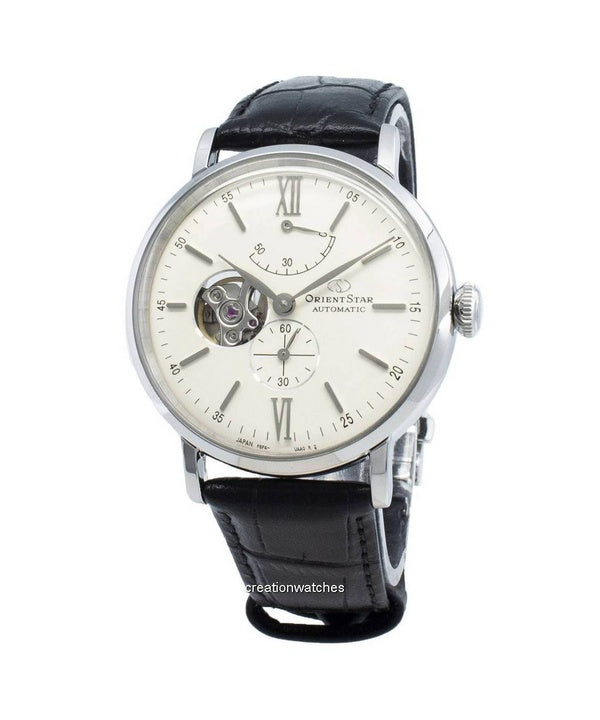 Montre homme Orient Star Classic bracelet en cuir cœur ouvert cadran crème automatique RE-AV0002S00B remise à neuf
