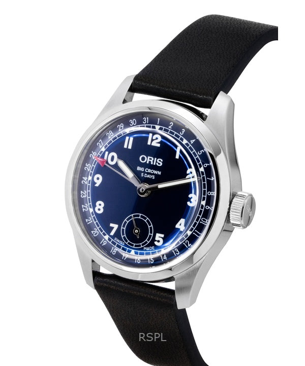 Montre homme Oris Big Crown Pointer Date Calibre 403, bracelet cuir, cadran bleu, automatique, 01-403-7776-4065-07-5-19-11