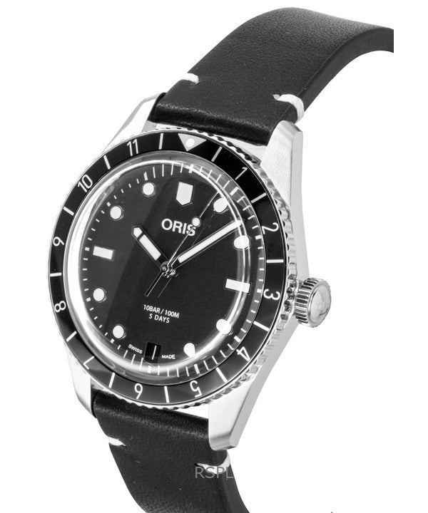 Montre homme Oris Divers Sixty Five 12H, bracelet cuir, cadran noir, automatique, référence 01 400 7772 4054-07 5 20 82 100M