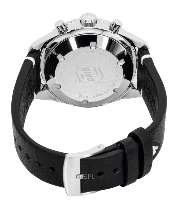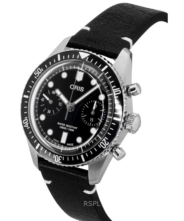 Montre homme Oris Divers Sixty-Five chronographe bracelet cuir cadran noir automatique 01-771-7791-4054-07-6-20-01 100 m
