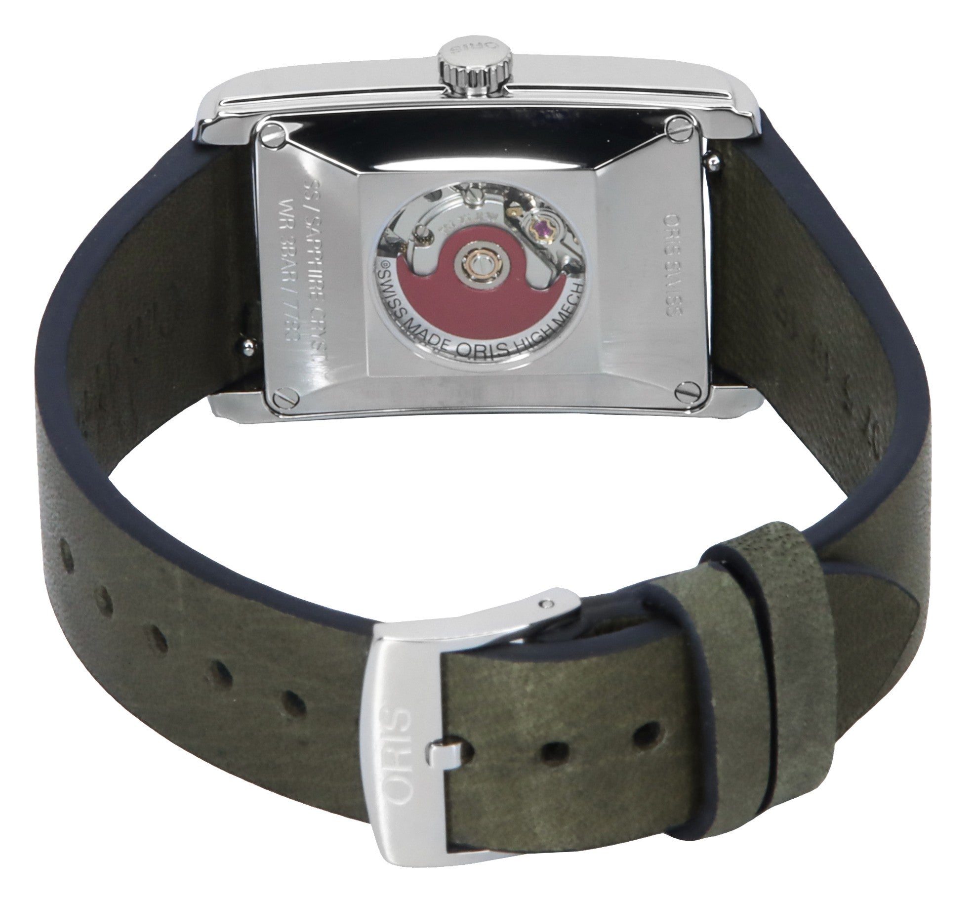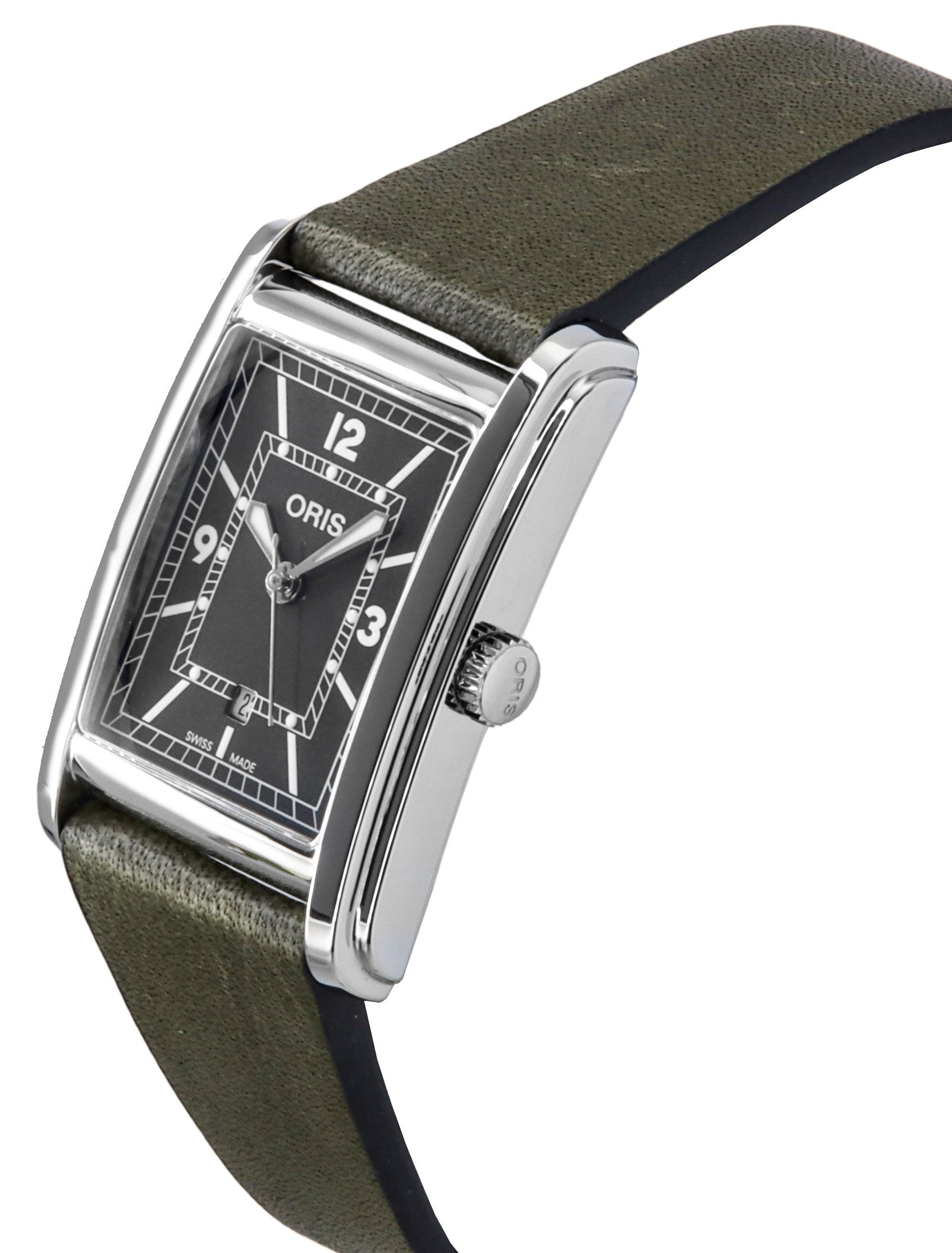 Montre homme Oris rectangulaire, bracelet cuir, cadran vert, automatique, 01-561-7783-4063-07-5-19-16