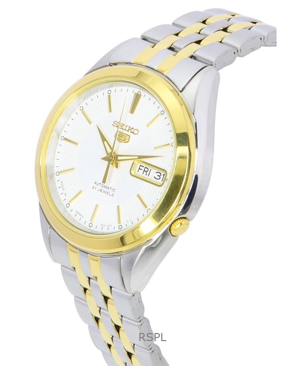 Montre homme Seiko 5 bicolore en acier inoxydable, cadran blanc, automatique, SNKL24J1, remise à neuf