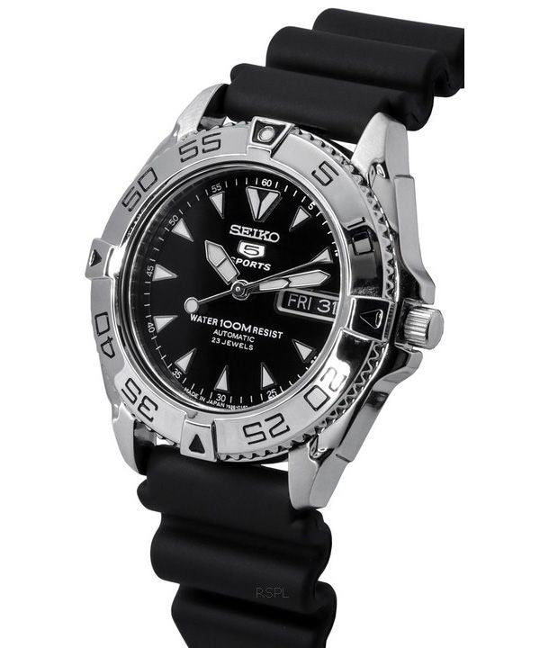 Montre Homme Seiko 5 Sports Bracelet Caoutchouc Cadran Noir Automatique SNZB33J2 100M