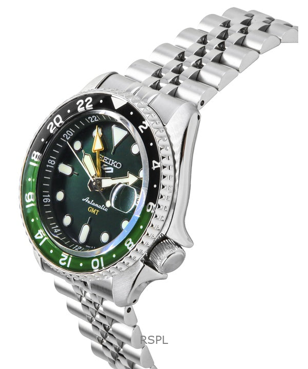 Montre homme Seiko 5 Sports SKX GMT, acier inoxydable, cadran vert, automatique, SSK035K1, 100 m