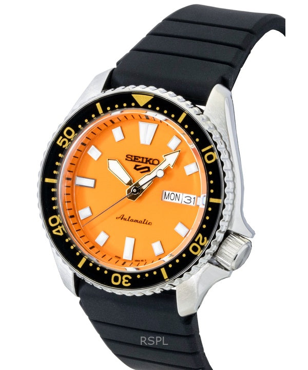 Montre homme Seiko 5 Sports SKX Redux, bracelet en silicone, cadran orange, automatique SRPL89K1, étanche à 100 m