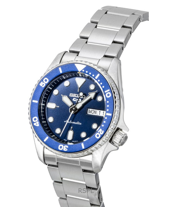 Montre homme Seiko 5 Sports SKX Street Denim en acier inoxydable, cadran bleu, automatique SRPL77K1, étanche à 100 m