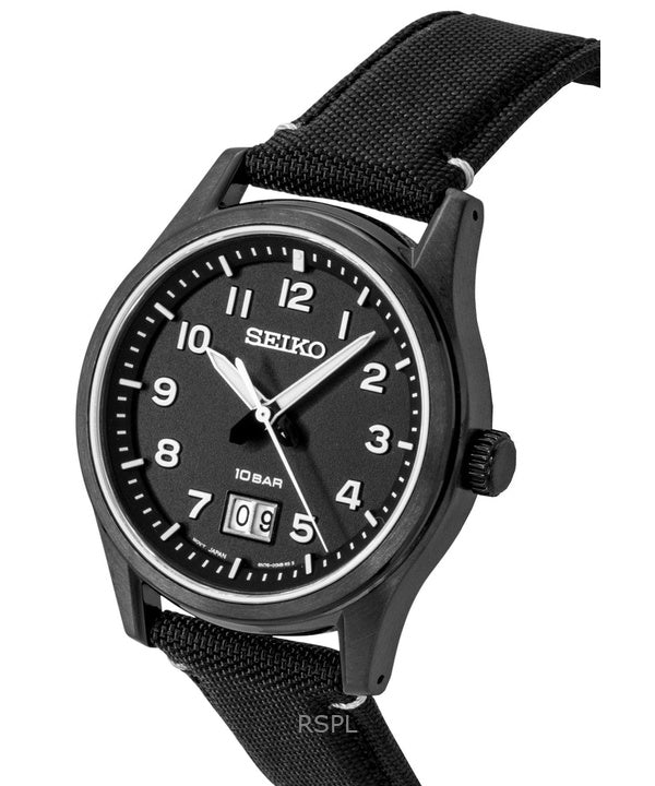 Montre homme Seiko Classic à bracelet en nylon, cadran noir, quartz SUR571P1, étanche à 100 m