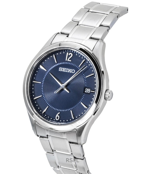 Montre homme Seiko Classic en acier inoxydable, cadran bleu, quartz SUR419P1, étanche à 100 m