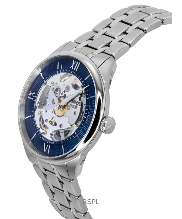 Montre homme Tissot Chemin des Tourelles en acier inoxydable, cadran squelette bleu, automatique, T139.836.11.048.00