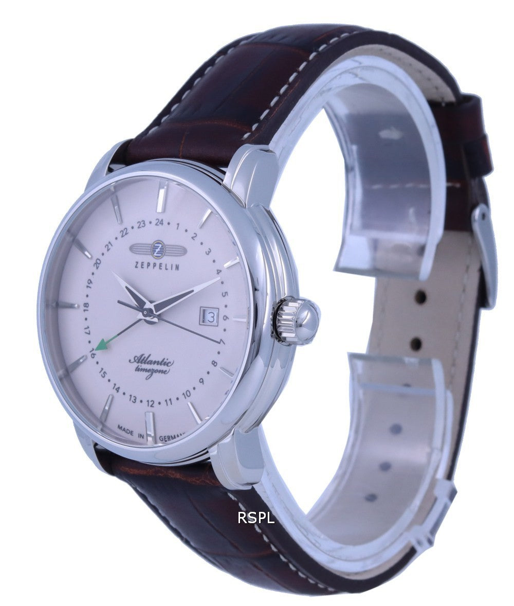 Montre Homme Zeppelin Atlantic Cadran Beige Bracelet Cuir Quartz 8442-5 84425