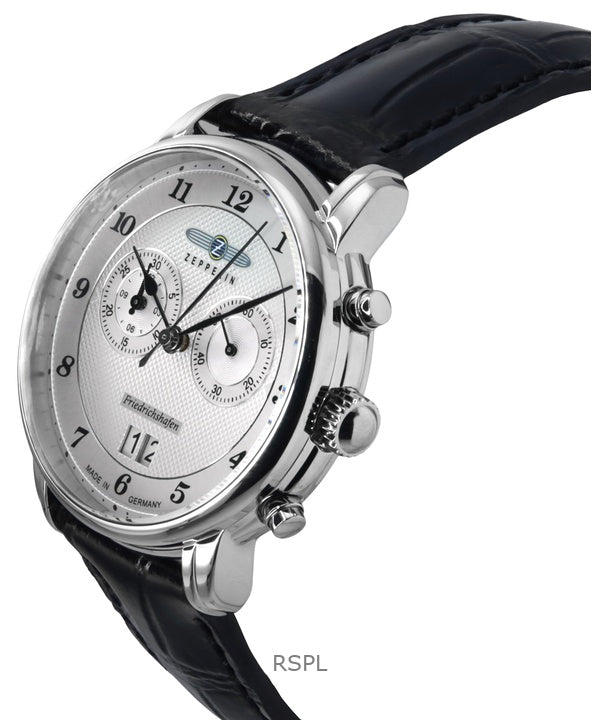 Montre Homme Zeppelin Friedrichshafen Bracelet Cuir Cadran Argent Quartz 85844