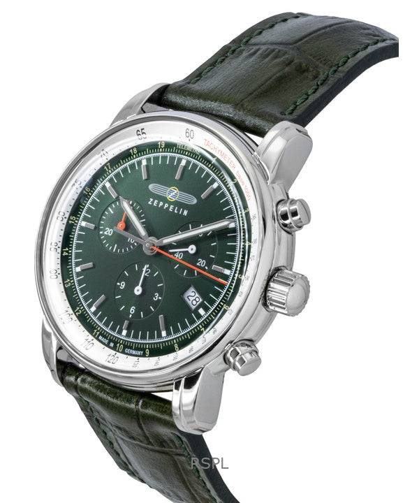 Montre homme Zeppelin LZ 14 Marine Chronographe Bracelet cuir Cadran vert Quartz 88884