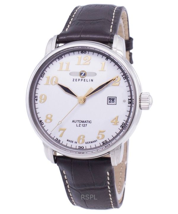 Montre homme Zeppelin LZ127 Graf bracelet en cuir cadran blanc fabrication allemande automatique 76561