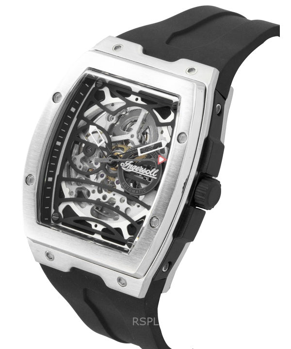 Montre Ingersoll The Challenger pour homme, bracelet en caoutchouc, cadran squelette noir, automatique, I12301