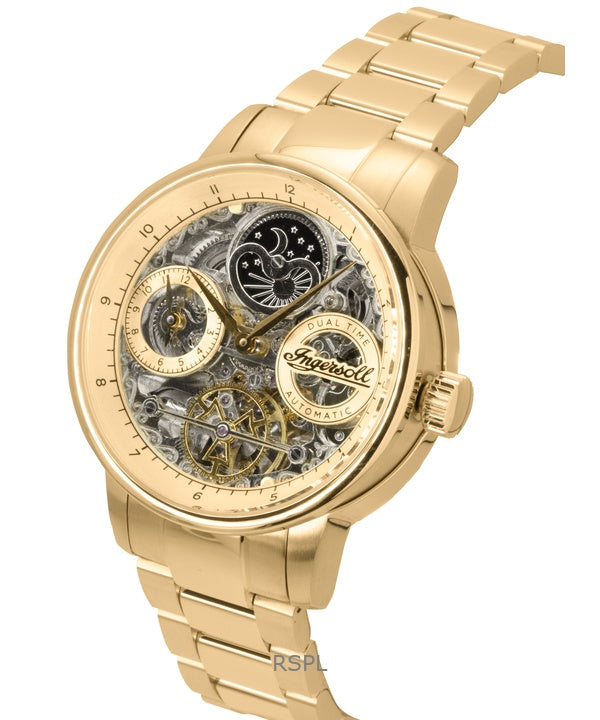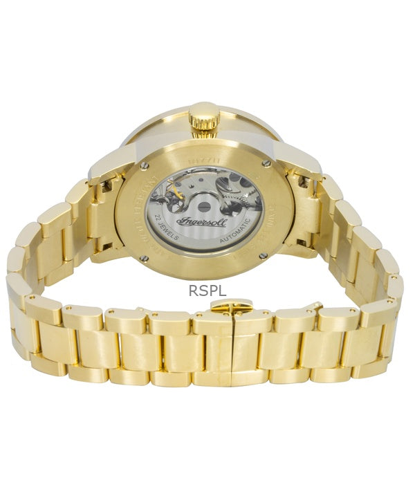 Montre Ingersoll The Jazz pour homme, automatique, cadran squelette doré, acier inoxydable, I07711