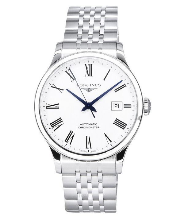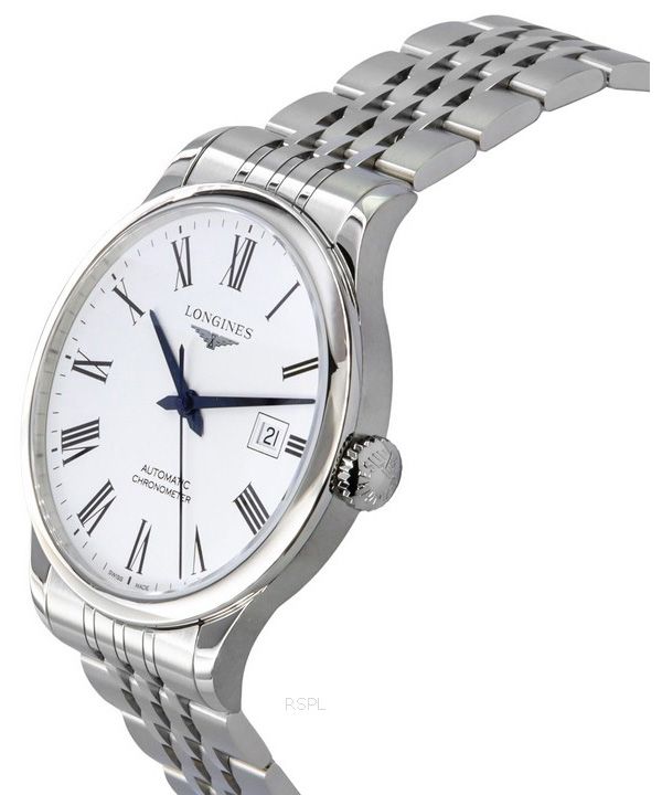 Montre Longines Record Chronometer en acier inoxydable avec cadran blanc automatique L2.821.4.11.6 pour homme