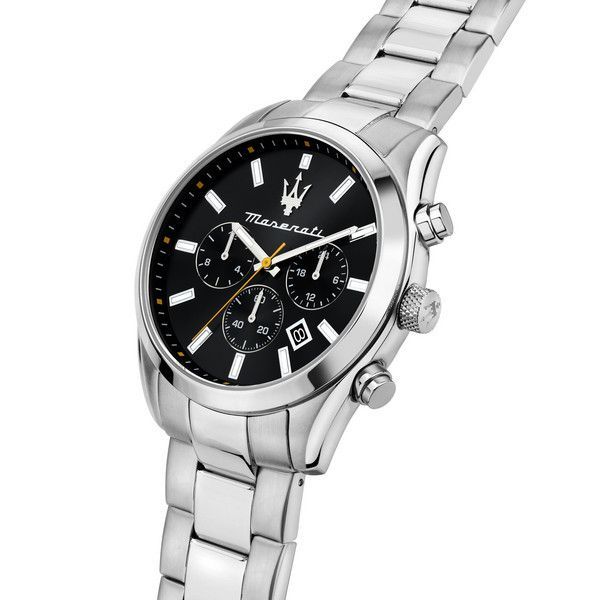 Montre Maserati Attrazione chronographe en acier inoxydable avec cadran noir et quartz R8853151010 pour homme