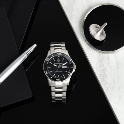 Montre Maserati Competizione en acier inoxydable avec cadran noir automatique R8823100002 100M pour homme