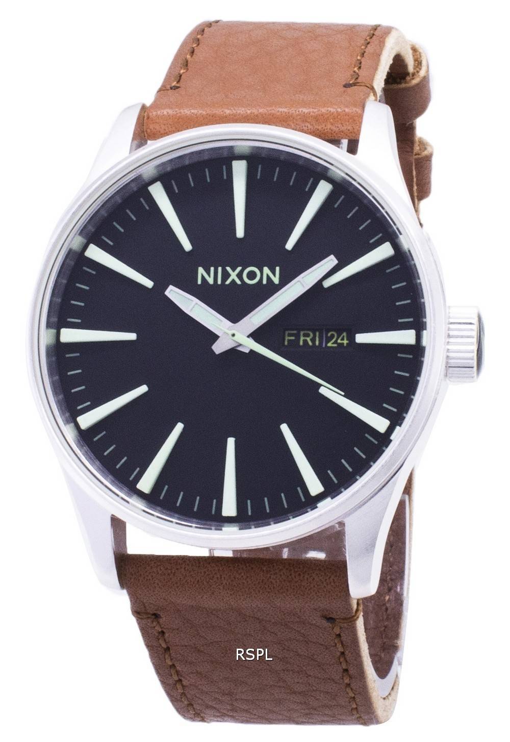 Montre Nixon Quartz Sentry en cuir marron A105-1037-00 homme