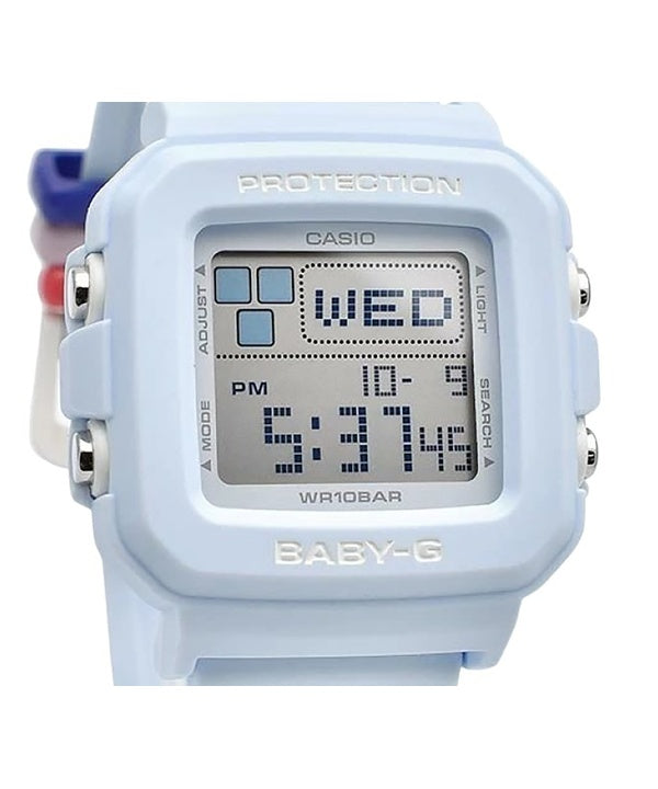 Montre numérique Casio Baby-G Plus pour femme avec bracelet en résine bleu clair et quartz BGD-10L-2 100 m et passants de bracel