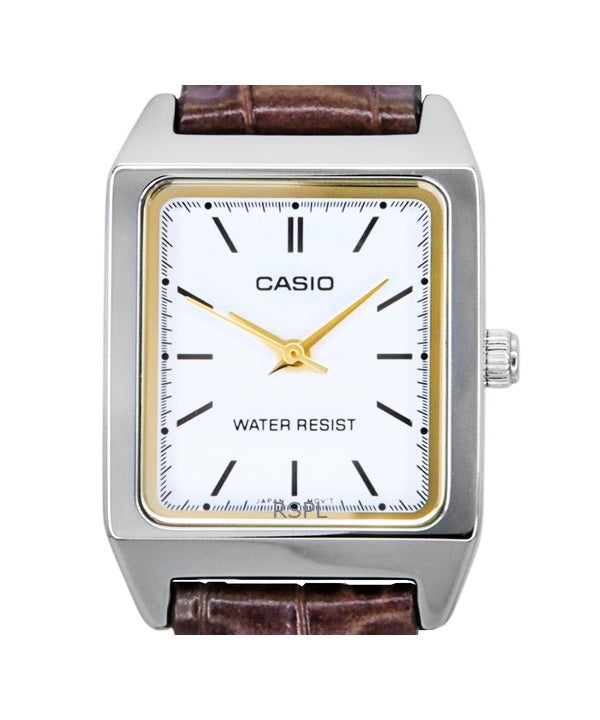 Montre pour femme Casio Standard analogique avec bracelet en cuir et cadran blanc à quartz LTP-V007L-7E2