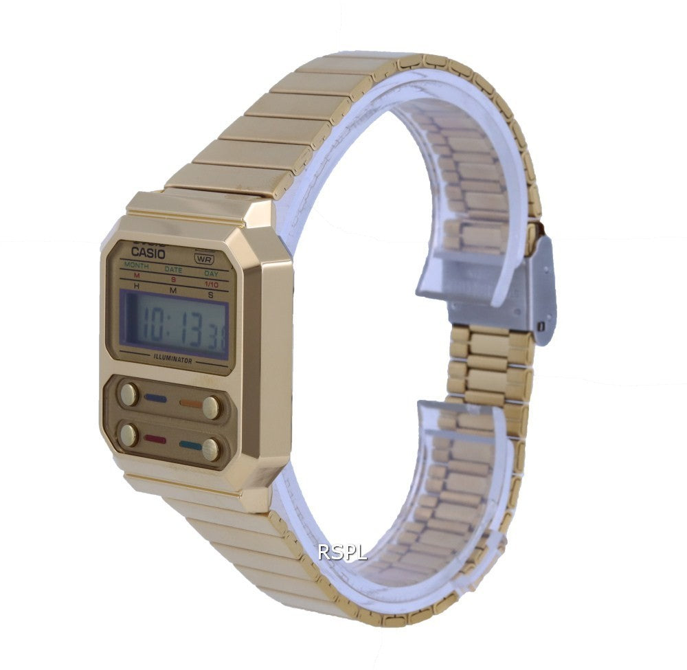 Montre pour femme Casio Youth Vintage en acier inoxydable numérique A100WEG-9A A100WEG-9