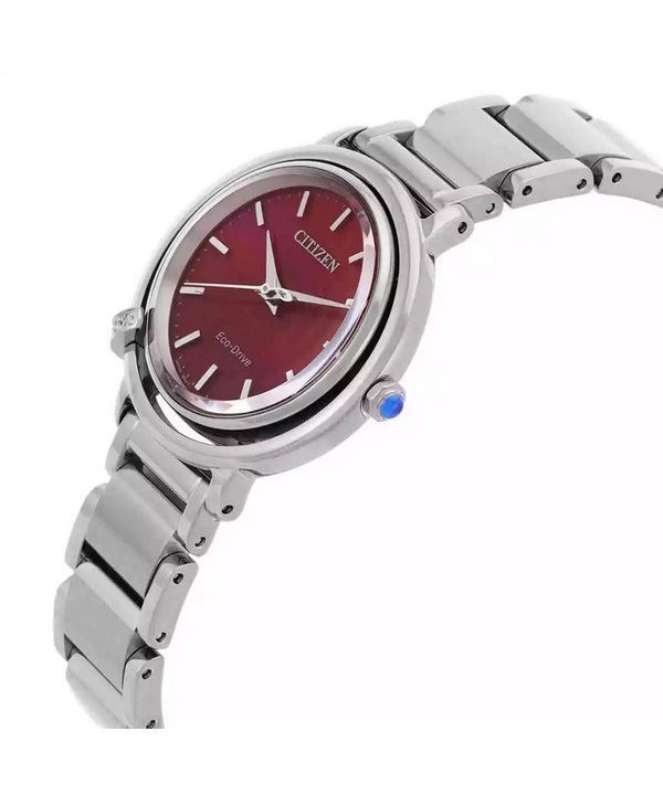 Montre pour femme Citizen L Eco-Drive en acier inoxydable avec cadran rouge EM1090-78X