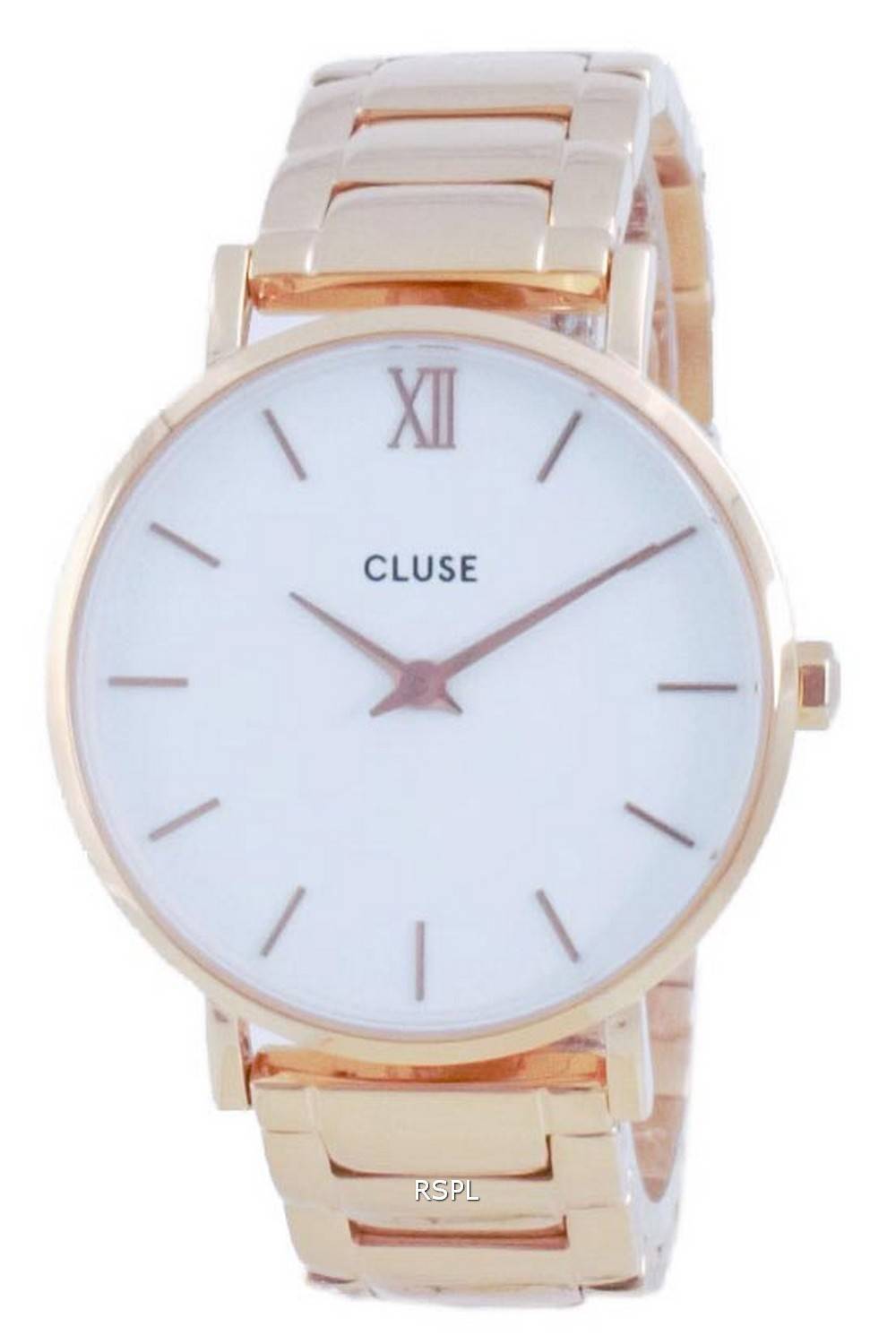 Montre pour femme Cluse Minuit à 3 maillons avec cadran blanc en acier inoxydable ton or rose CW0101203027