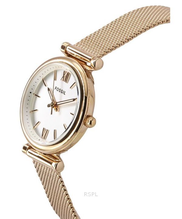 Montre pour femme Fossil Carlie en acier inoxydable doré rose avec cadran argenté ES5314SET avec coffret cadeau