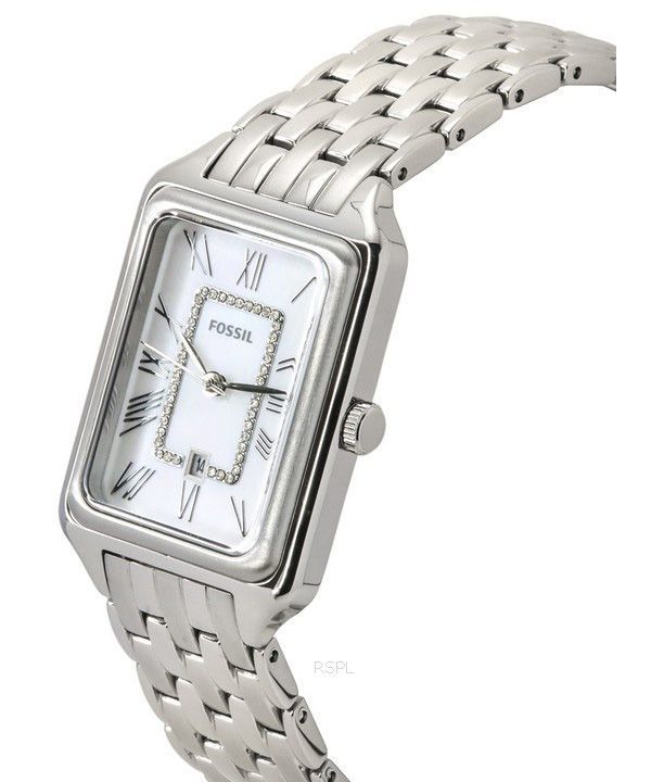 Montre pour femme Fossil Raquel en acier inoxydable avec cadran en nacre blanche et quartz ES5306