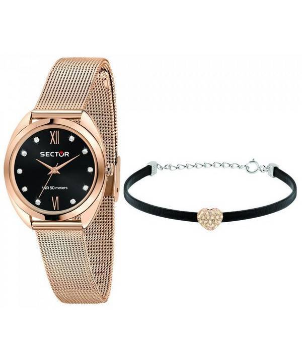 Montre pour femme Sector 955 cadran noir en acier inoxydable ton or rose à quartz R3253518504