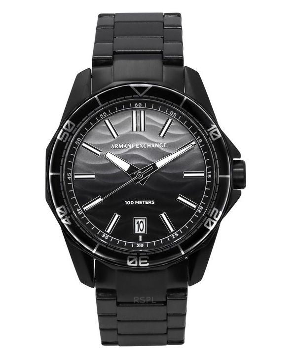 Montre pour homme Armani Exchange en acier inoxydable noir avec cadran gris et quartz AX1952 100M