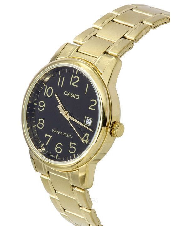 Montre pour homme Casio analogique en acier inoxydable doré avec cadran noir et quartz MTP-V002G-1B