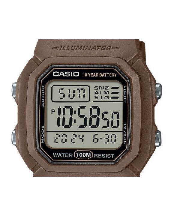 Montre pour homme Casio Digital Brown Dual Time avec bracelet en résine Quartz W-800H-5AV 100M