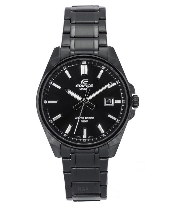 Montre pour homme Casio Edifice analogique en acier inoxydable plaqué ionique noir avec cadran noir à quartz EFV-150DC-1A 100M