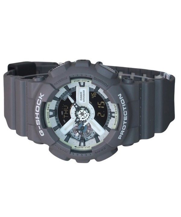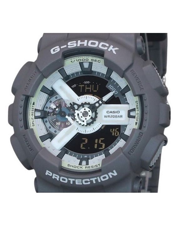 Montre pour homme Casio G-Shock Hidden Glow Series Bracelet en résine numérique analogique Cadran gris Quartz GA-110HD-8A 200M