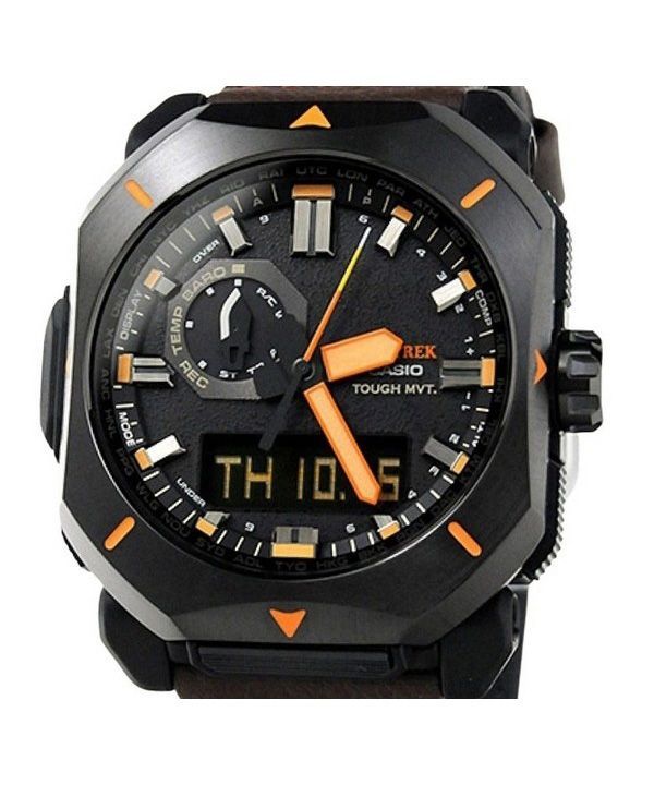 Montre pour homme Casio ProTrek analogique numérique bracelet en cuir marron cadran gris robuste solaire PRW-6900YL-5 100M