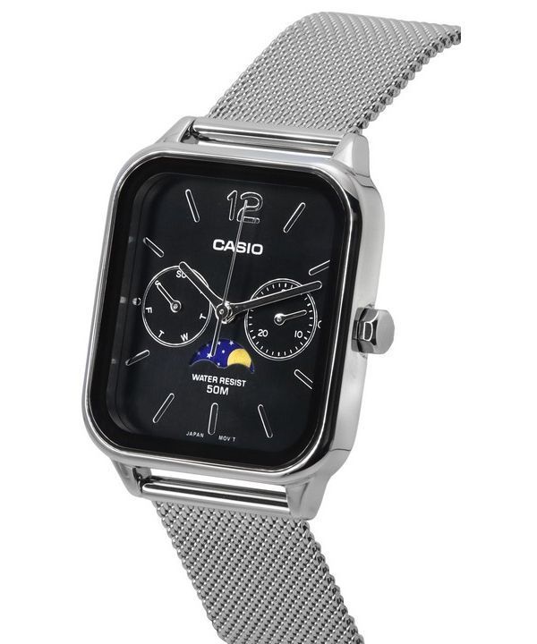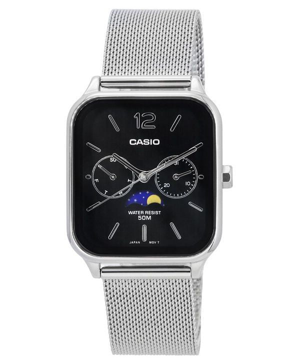 Montre pour homme Casio Standard Analog Moon Phase Mesh Strap Cadran noir Quartz MTP-M305M-1A
