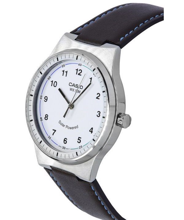 Montre pour homme Casio Standard analogique avec bracelet en cuir et cadran blanc à énergie solaire MTP-RS105L-7B