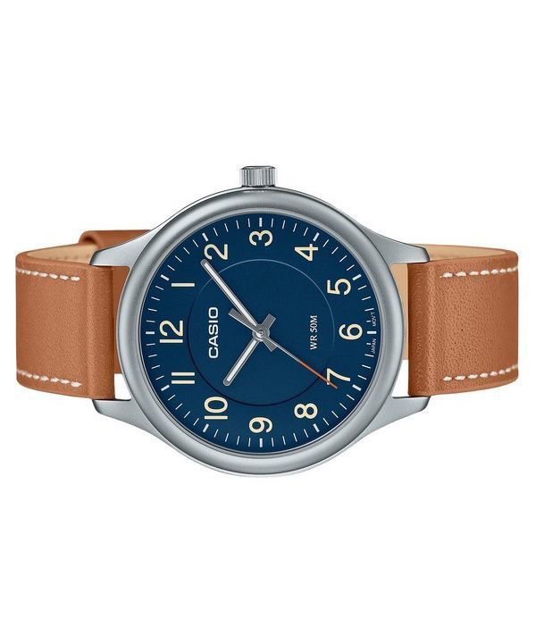Montre pour homme Casio Standard analogique avec bracelet en cuir et cadran bleu à quartz MTP-B160L-2B