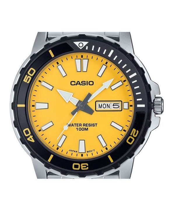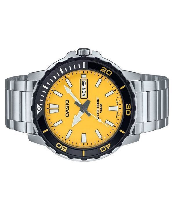 Montre pour homme Casio Standard analogique en acier inoxydable avec cadran jaune et quartz MTD-125D-9AV 100M