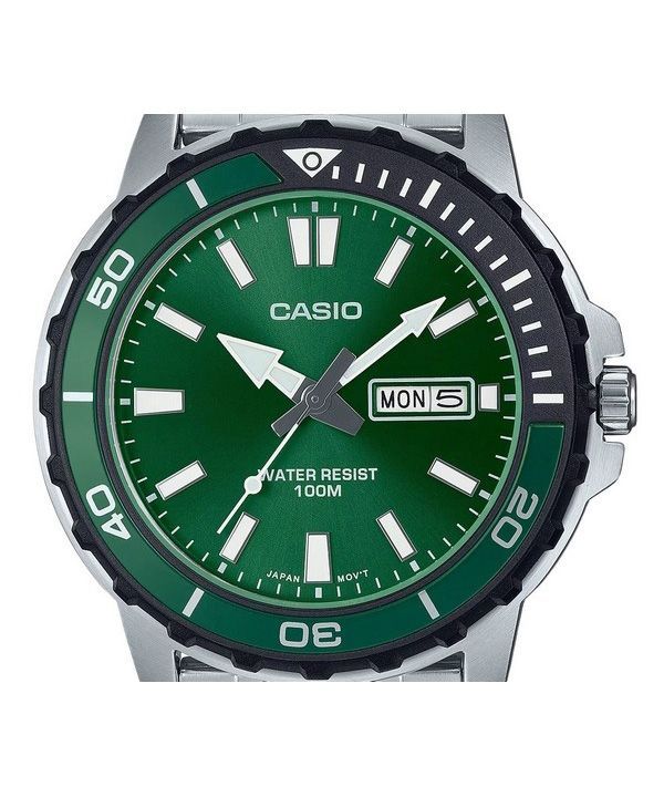 Montre pour homme Casio Standard analogique en acier inoxydable avec cadran vert et quartz MTD-125D-3AV 100M