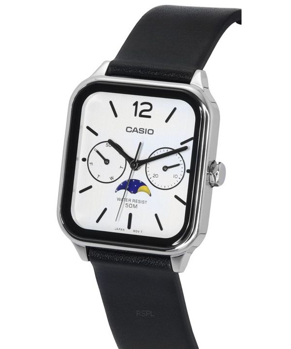 Montre pour homme Casio Standard analogique phase de lune bracelet en cuir cadran blanc Quartz MTP-M305L-7A