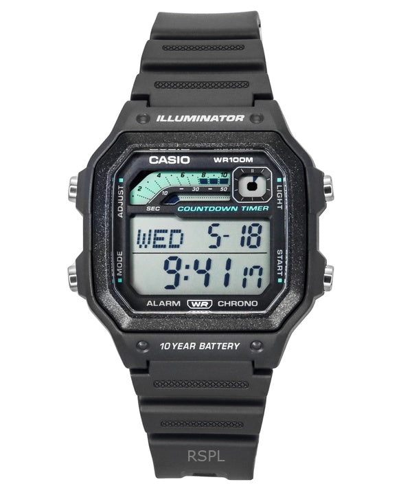 Montre pour homme Casio Standard avec bracelet en résine numérique et quartz gris WS-1600H-8AV 100M