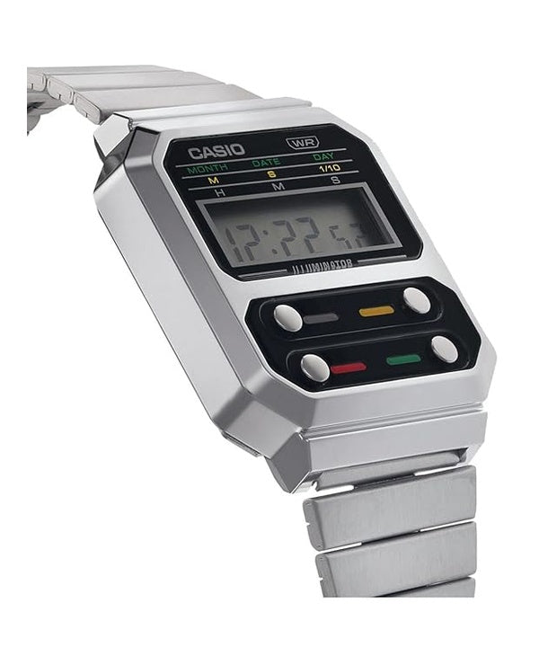 Montre pour homme Casio Vintage Digital en acier inoxydable A100WE-1A A100WE-1