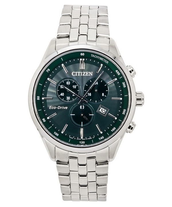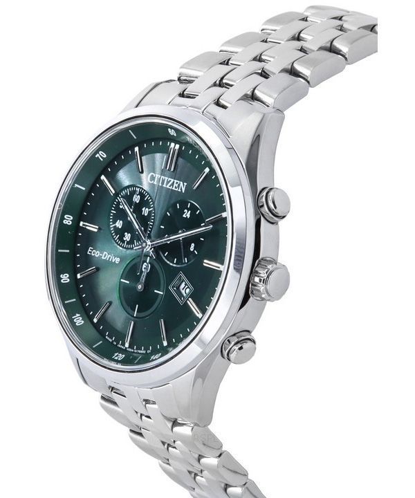 Montre pour homme Citizen Classic Corso Eco-Drive chronographe en acier inoxydable avec cadran vert AT2149-85X 100M