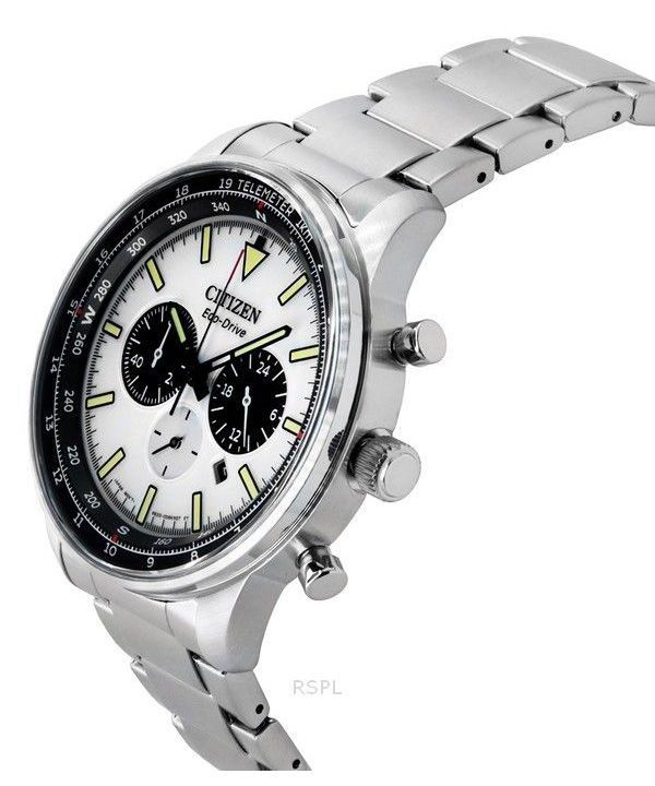 Montre pour homme Citizen Eco-Drive chronographe en acier inoxydable avec cadran blanc CA4500-91A 100M