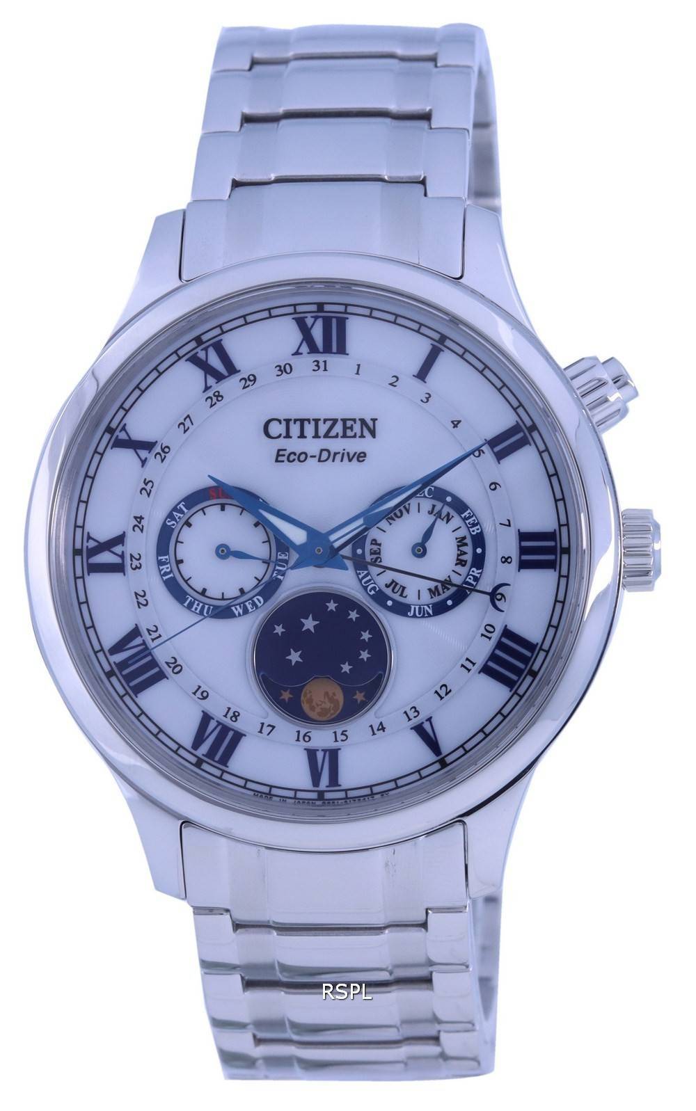 Montre pour homme Citizen Phase de lune à cadran blanc en acier inoxydable Eco-Drive AP1050-81A